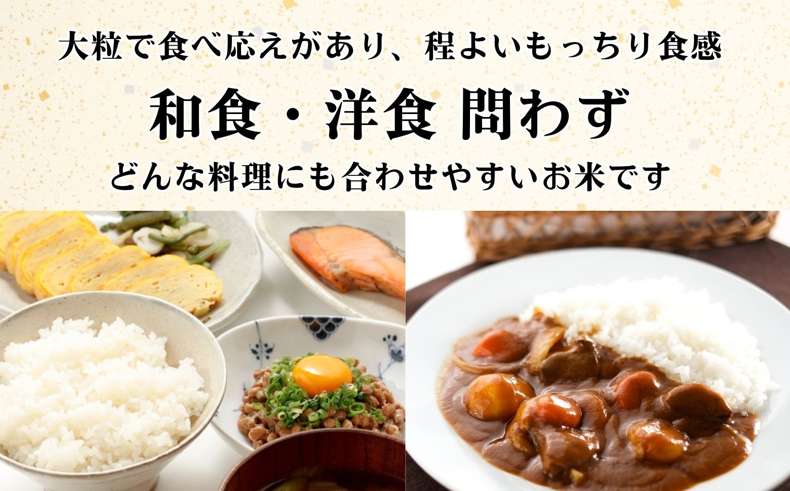 「香り」「旨味」ともにコシヒカリよりも評価が高く、和食・洋食など、どんな料理にも合わせやすいと言われています。