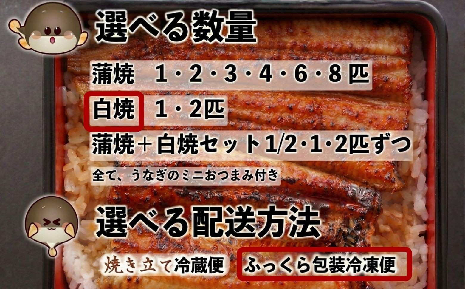 着日・時間指定可!蒸しを入れた柔らかいうなぎを備長炭で丁寧に焼き上げました。 【冷凍】国産 うなぎ 白焼 \ 選べる尾数 / うなぎのミニおつまみ付 〜明治37年創業「本多」〜 | 国産 ウナギ 蒲焼 炭火焼 おつまみ 半分 秘伝 (Ab)