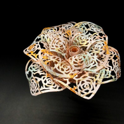 西陣織の着物生地と立体切り絵の融合 一つ一つ手作業で心を込めて 西陣織×立体切り絵・バラ【1414925】