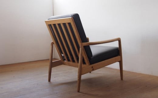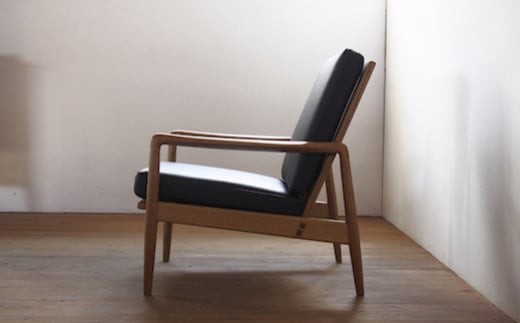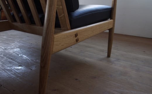 厚い国産ナラ材を削り出して作ったアームが特徴の1人用ソファ。