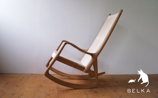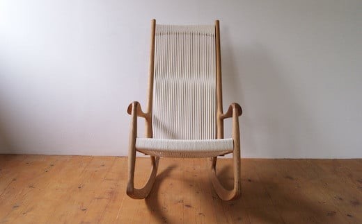 厚い国産ナラ材を削り出して作ったアームが特徴のロッキングチェア。 全てが木組みで組み立てられており、アームは手触りが滑らかになるように丁寧に磨きをかけています。 ロープを編みこまず、とても強いテンションをかけて縦張りにしたことにより、体を包み込むようなフィット感があり、ハンモックのようにゆったりとくつろげます。 工房にて試乗いただくこともできます。 ※オリジナル商品 ※天然木・無垢材なので木目や色合いは様々です。写真は作例です。 ※お届けする材種は長野県産ナラ材となります。 ≪ナラ材について≫ 重硬かつ耐久性も高く、強度的にバランスの取れた材です。 木目は粗く、柾目面に虎斑といわれる模様が帯状にでることがあります。 ※柾目:真っ直ぐな木目が出るように製材した板 数年単位の経年変化で飴色になり、深みが増します。 鉄や汗と反応し黒く変色するのでオイル塗装の場合は注意が必要です。 提供元:家具製作BELKA BELKAは長野県で工房を構え、オーダーメイド家具のデザイン・設計から製作までを一貫して行っています。 長野県産材を中心に様々な無垢材を使い、ひとつひとつ丁寧な仕事を心がけています。