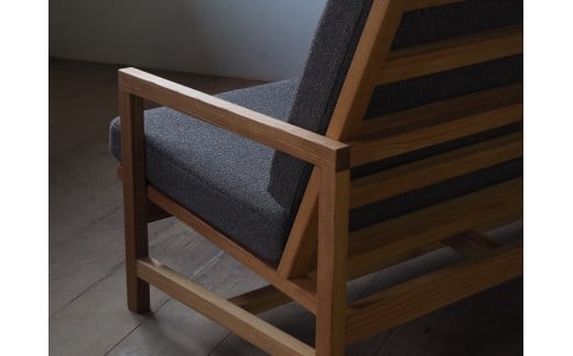厚い国産ナラ材を削り出して作ったアームが特徴の1人用ソファ。 座面の固定以外は全て木組みで作られており、アームは手触りが滑らかになるように丁寧に磨きをかけています。 クッションは牛革張りで、内部には耐久性のある素材を使用。背もたれは肩くらいまでの高さがあり、ゆったりくつろげます。 ≪ナラ材について≫ 重硬かつ耐久性も高く、強度的にバランスの取れた材です。 木目は粗く、柾目面に虎斑といわれる模様が帯状にでることがあります。 ※柾目:真っ直ぐな木目が出るように製材した板 数年単位の経年変化で飴色になり、深みが増します。 鉄や汗と反応し黒く変色するのでオイル塗装の場合は注意が必要です。 提供元:家具製作BELKA BELKAは長野県で工房を構え、オーダーメイド家具のデザイン・設計から製作までを一貫して行っています。 長野県産材を中心に様々な無垢材を使い、ひとつひとつ丁寧な仕事を心がけています。