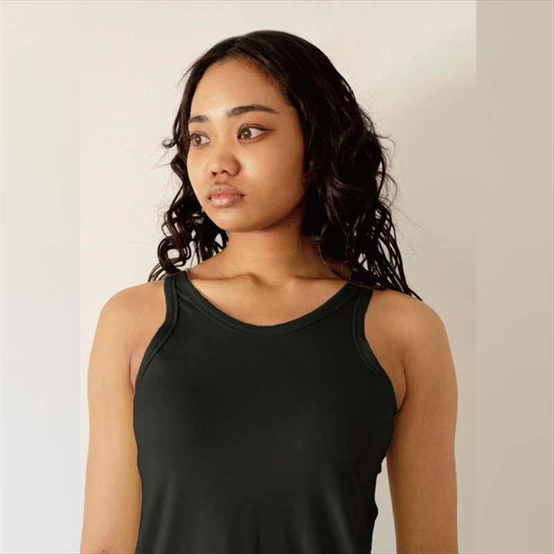 【商品コード】161-3125-001 温度調節素材見せるインナー/ 暑いときは涼しく、寒いときは温めてくれる/Uネック/スクエアネック2WAYレーヨンタンクトップ (ブラック・Fサイズ) 【 インナー 下着 長野県 佐久市 】