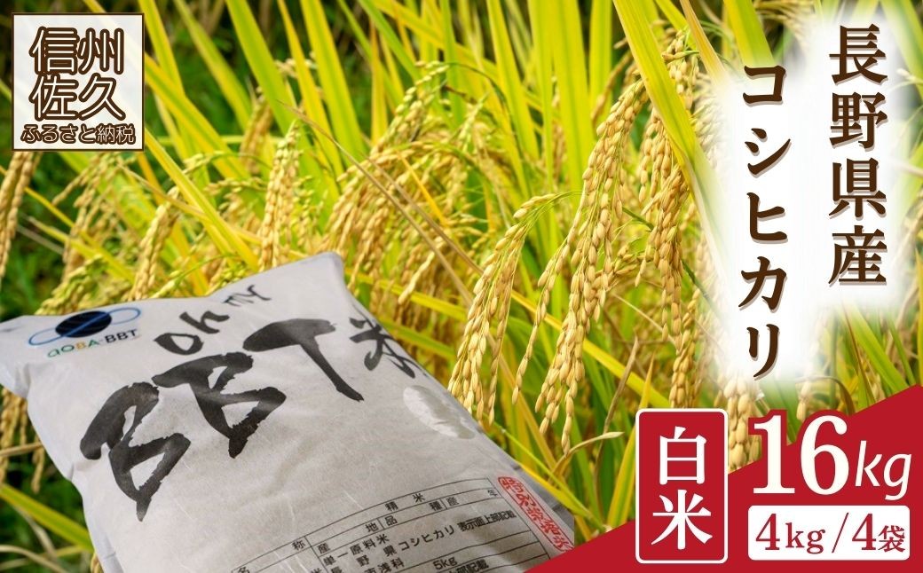【商品コード】161-3074-253 【令和8年産・白米16kg(4kg×4袋)】特別栽培米 BBT米(五郎兵衛米) 〈2026年10月中旬頃~順次発送〉 先行予約 新米 信州 こしひかり【 米 コメ 白米 精米 お米 こめ おこめ 予約 備蓄品 コシヒカリ 長野県 佐久市 】
