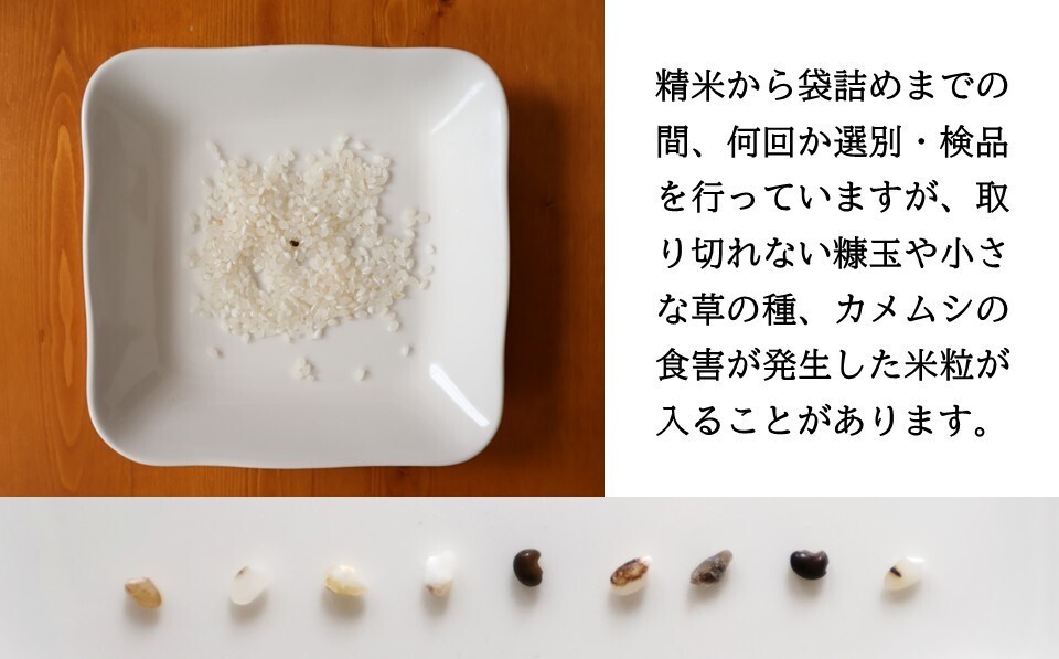 安全な反面、虫がつきやすく鮮度が落ちやすいお米です。お届け後は高温多湿を避け、適切な環境での保存をお願いいたします。