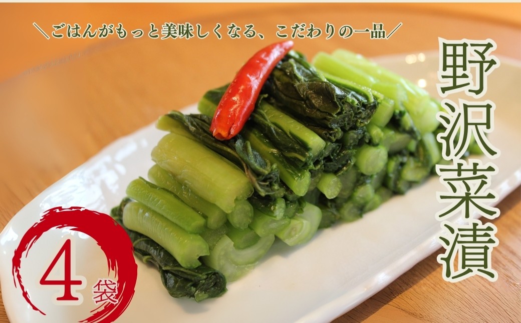 ごはんがもっと美味しくなる、特別な一品 野沢菜漬 (唐辛子入) 220g × 4袋セット 自社農園 | 漬物 つけもの 国産 野沢菜 野沢菜漬け ご飯 おかず 副菜 つまみ 郷土食 郷土料理 千曲市 長野県産 信州