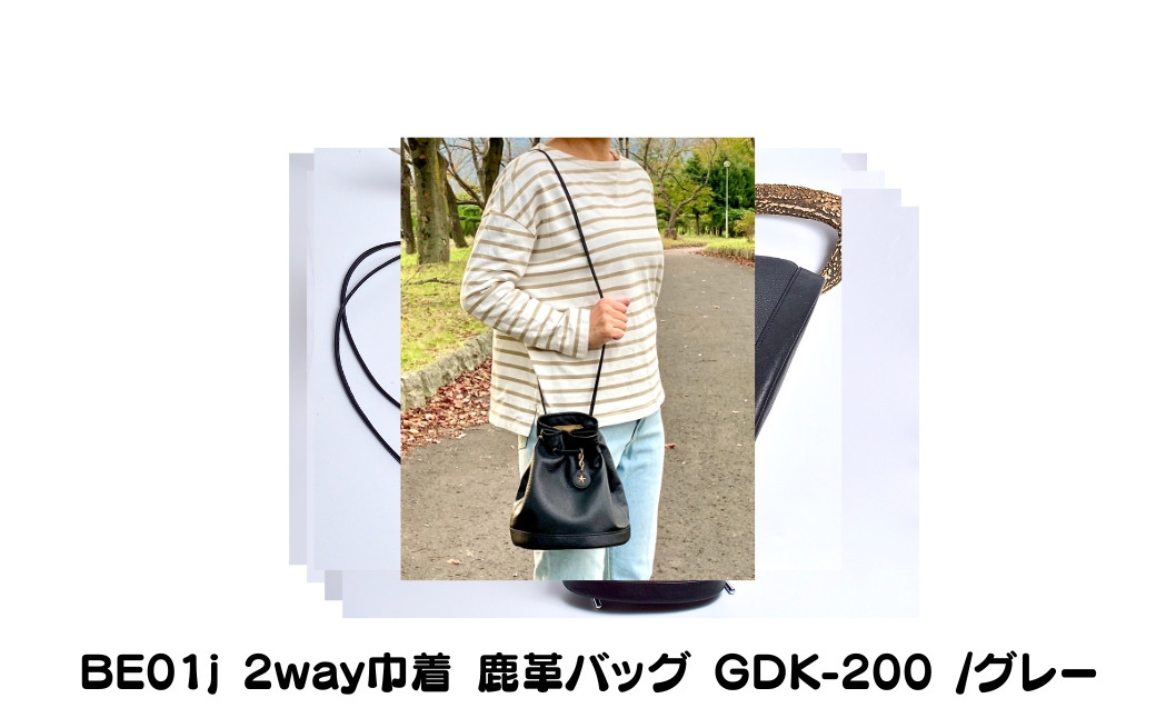 2way巾着鹿革バッグ GDK-200 / グレー| 巾着バッグ 本革巾着 …72,000 円 きゅっと絞って、ふんわりお洒落。レザーなのに軽やか巾着バッグ - 別送