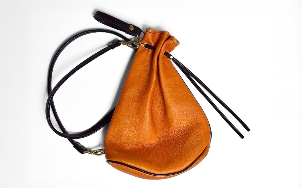 信州鹿革:巾着ショルダー DHB-100/ キャメル| 巾着バッグ 革…69,000 円 小さくても頼れる、上質レザーの巾着 - 別送
