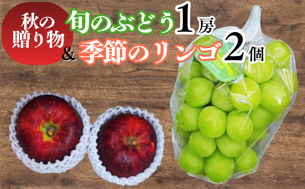 信州の実りの秋をお届け 秋の贈り物 旬のぶどう1房と季節のりんご2個詰め合わせ|葡萄 ブドウ 林檎 詰め合わせ セット 千曲市 長野県 信州
