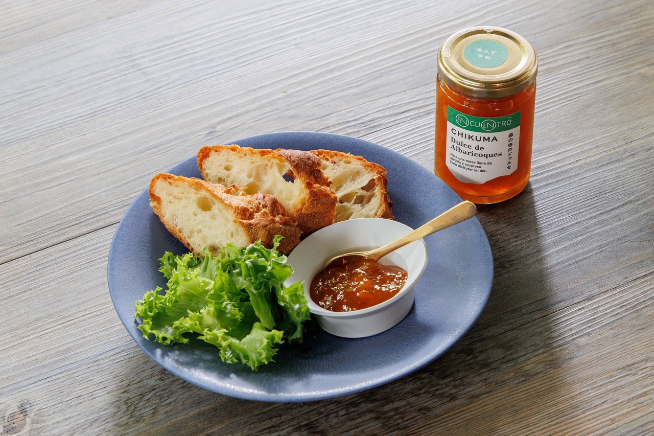 古くからのあんずの名産地・千曲市の季節のあんずを、スペイン風のジャム「ドゥルセ」に仕上げました。「ドゥルセ」はスパイスなどのアクセントになる食材を加えています。