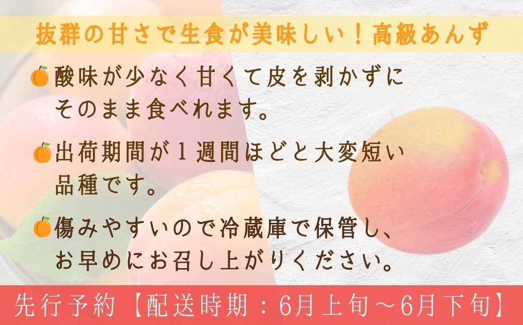 ●あんずは収穫時期が限られている為、日付のご希望・指定はお受けできませんので予めご了承ください。