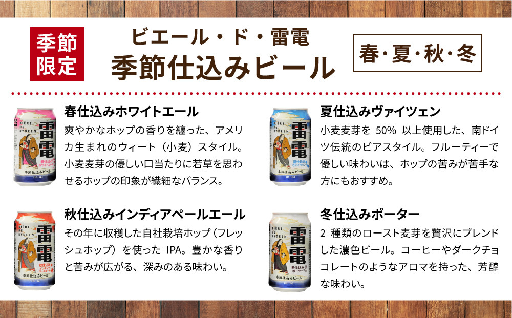 【季節仕込み】 四季折々、その季節におすすめのスタイルを発信している東御市自慢のクラフトビール「ビエール・ド・雷電」。
