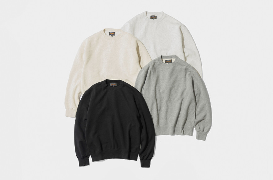 希少な旧式編み機 「アズマ編み機」を使用した30番/30番/7番の国産ヘビーウェイト裏毛素材。裏側は起毛無しの裏毛を使用し、季節の変わり目に向いた汎用性の高い素材です。