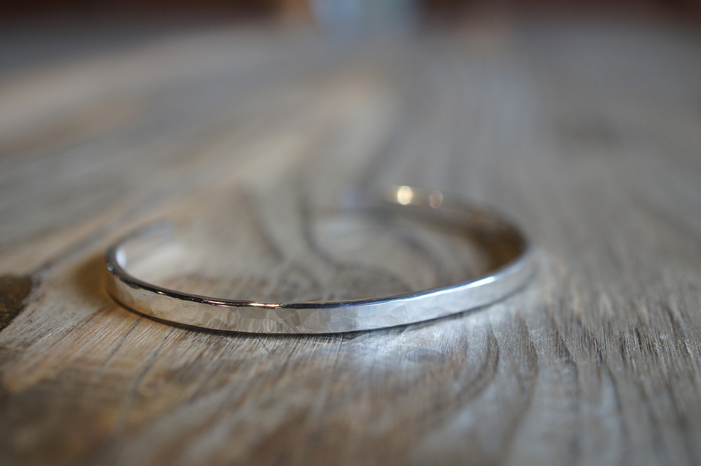 シルバーのバングルを1つ製作するワークショップです。 好きな文字や模様を刻印して、表面加工を行うことが出来ます。