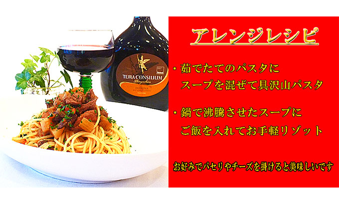 | 容量 | 【あめ色玉葱と黒ビールのスープ】【ドイツ料理店のポテトスープ】【ブロッコリーのクリームスープ】【具だくさんのグラシュスープ】各180g |