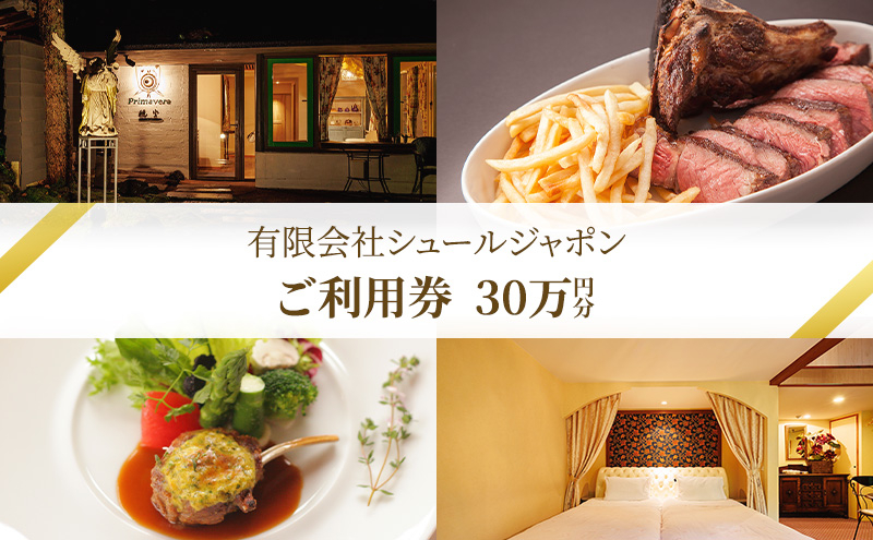 有限会社シュールジャポンが運営する、オーベルジュ・ド・プリマヴェーラのご宿泊、レストラン、暖炉焼きピレネー、穏坐barでご利用頂ける商品券(30万円分) [№5328-0356]