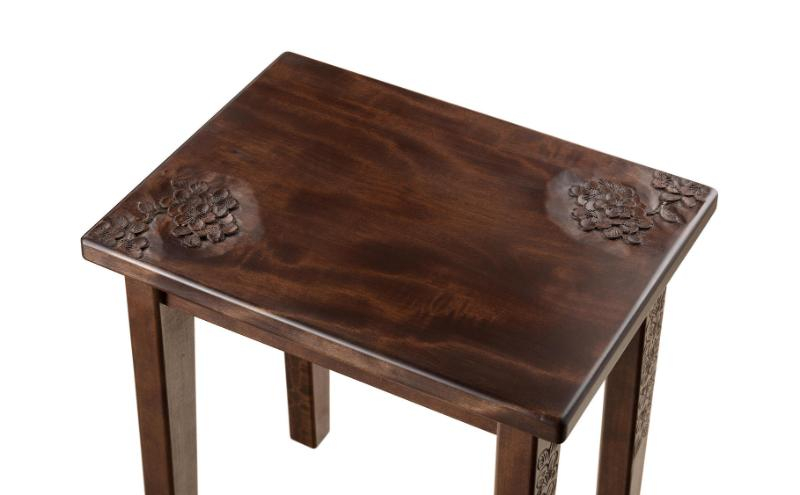 軽井沢彫のスツールです。一点一点家具職人が手作りで製作し彫刻師が彫刻を施しています。花台としてもお使いいただけます。桜の彫刻が特徴的です。コンパクトサイズなのでスペースを取らずお使いいただけます。軽井沢の歴史と共に歩んできた一彫堂は、旧軽井沢銀座通りに面し、初代から万平ホテルや三笠ホテル、宣教師別荘の洋家具を製作してきた軽井沢彫の老舗です。長野県指定伝統的工芸品に認定されています。 ※画像はイメージです。 ※一点ずつ手作業で彫刻しています。 ※無垢の天然木を使用しています。