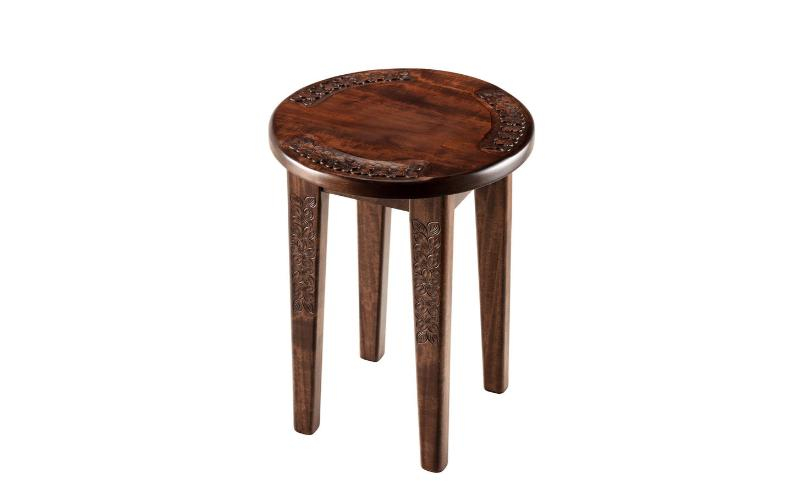 軽井沢彫 スツール 丸 桜彫刻[№5328-0361]