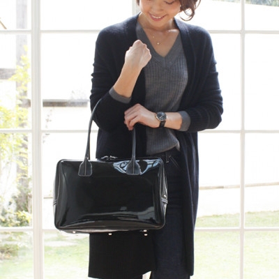 A4サイズ収納可能なので、通勤はもちろん、プリントやノートなども入る大きさなので、学校行事などにもオススメです。 特別な加工を施した高品質のエナメル素材。約460gという軽さも魅力です。1年を通してオールシーズン楽しめるボストンバッグです。