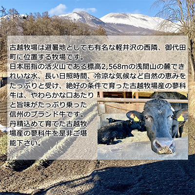丹精込めて育てた古越牧場産の蓼科牛を是非ご堪能下さい。
