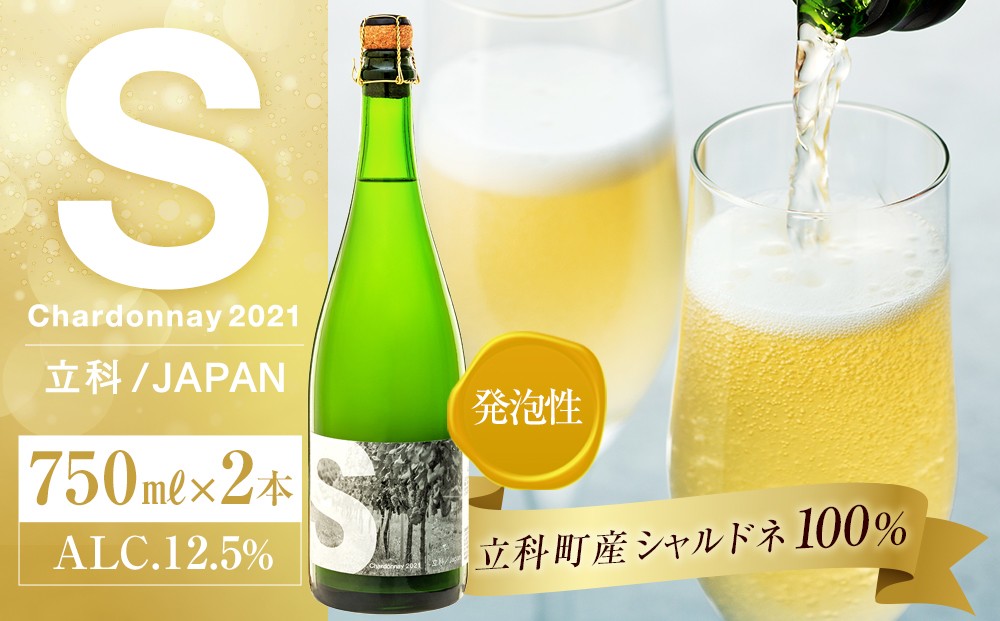 立科町産シャルドネ100%きめ細かい泡、豊かな香りと深い味わいの発泡性ワインです スパークリングワイン(”S")2本セット