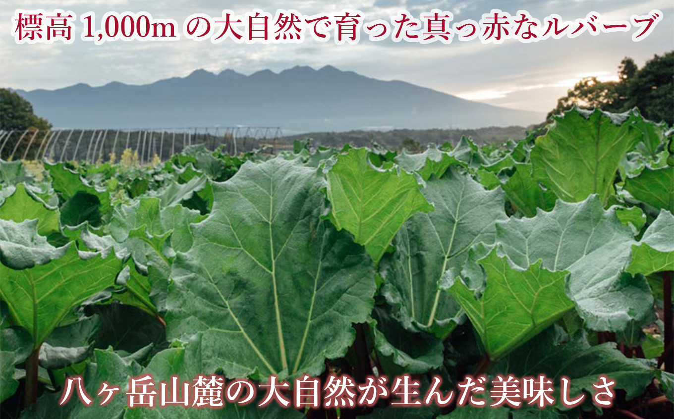 八ヶ岳の裾野、標高1000mの大自然に囲まれた「かぼちゃん農園」。私たちは20年間、真っ赤なルバーブ一筋に情熱を注いできました。朝6時からの収穫、丁寧な手洗い、有機肥料の使用など、一つ一つの工程に愛情を込めています。20cm以上の厳選されたルバーブは、みずみずしさとシャキシャキ感が自慢です。食の美味しさと楽しさを、心を込めてお届けします。