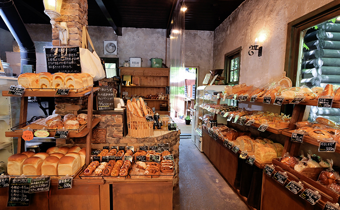 ナラの薪とブドウの枝で焼き上げる薪窯パンが人気のベーカリー。