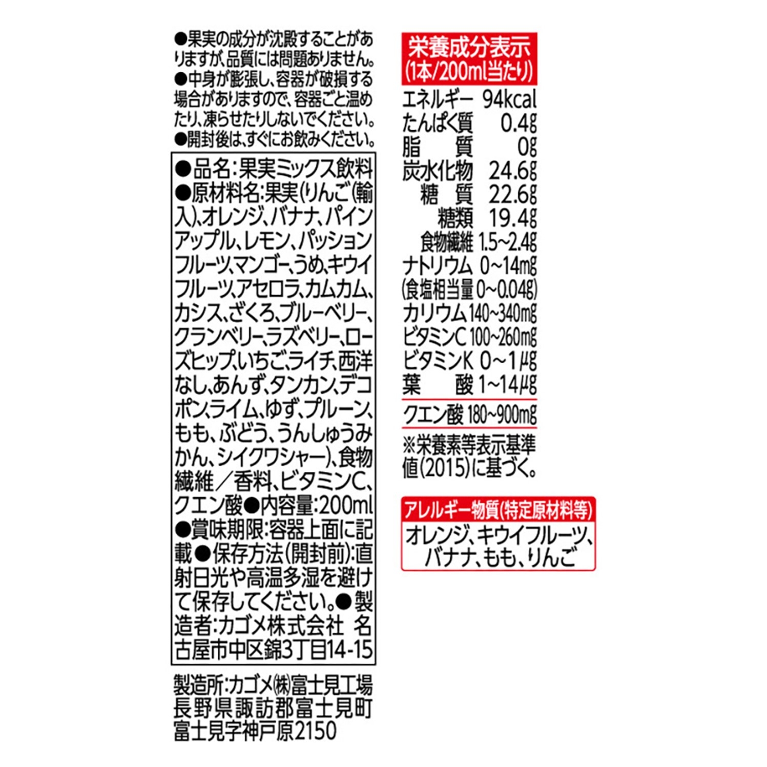 | 容量 | カゴメ朝のフルーツこれ一本(200ml/本) ※ご希望のお届け回数をお選びください 【通常便】 48本×1回 【定期便 2ヶ月】 48本×2回 【定期便 3ヶ月】 48本×3回 【定期便 4ヶ月】 48本×4回 【定期便 5ヶ月】 48本×5回 【定期便 6ヶ月】 48本×6回 【定期便 7ヶ月】 48本×7回 【定期便 8ヶ月】 48本×8回 【定期便 9ヶ月】 48本×9回 【定期便 10ヶ月】 48本×10回 【定期便 11ヶ月】 48本×11回 【定期便 12ヶ月】 48本×12回 |
