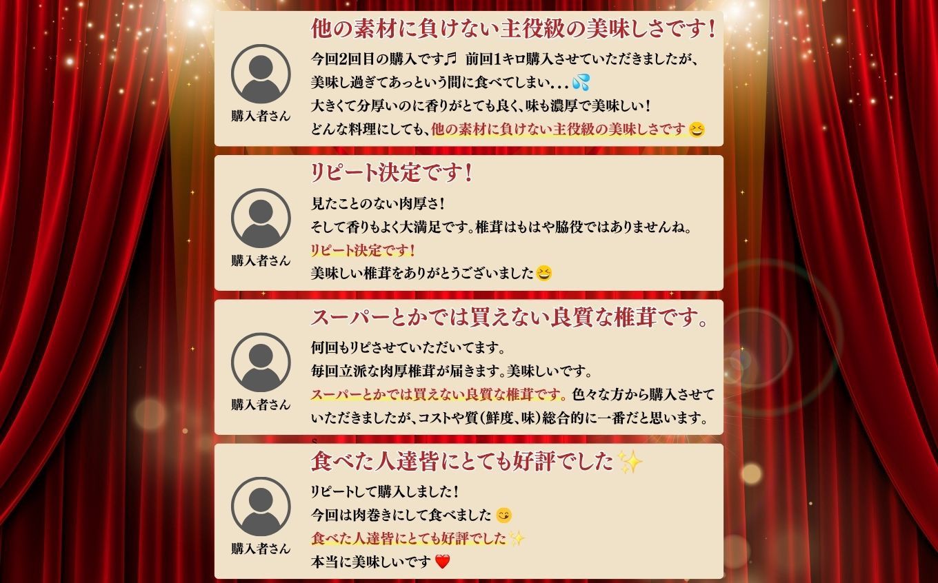 椎茸は地味だ、脇役だと言われてきたけれど、私たちはそうは思いません。口に入れた瞬間、香りが広がり、歯ごたえが残る。そんな存在感のあるきのこで、食卓に小さな驚きと幸せを届けたい。それが私たちの願いです。