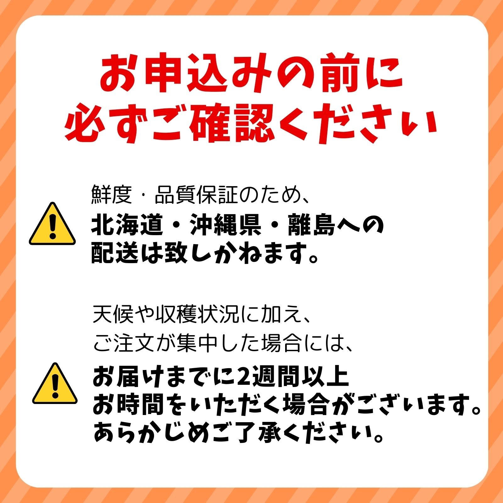 ※出荷前の発送予定メールはお送り出来かねますのでご注意ください。(収穫状況などにより予測できないため)