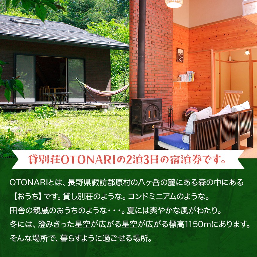 貸別荘OTONARIの2泊3日の宿泊券です。
