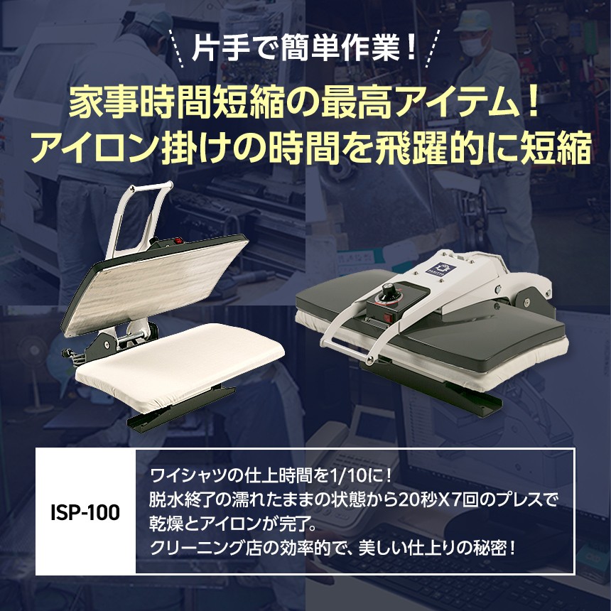 老舗縫製工場用機器&クリーニング機器専門メーカーが業務用アイロンプレス機を家庭用に小型化しました。