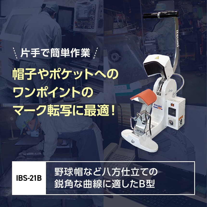ワンポイントのマーク転写に最適な小型の転写プレス機! 手動マーク昇華転写プレス機 IBS-21B | 転写 マーク転写 鋭角曲線 プレス 小型 帽子 キャップ 野球帽 日本製 信州 八ヶ岳 長野県 諏訪郡 原村
