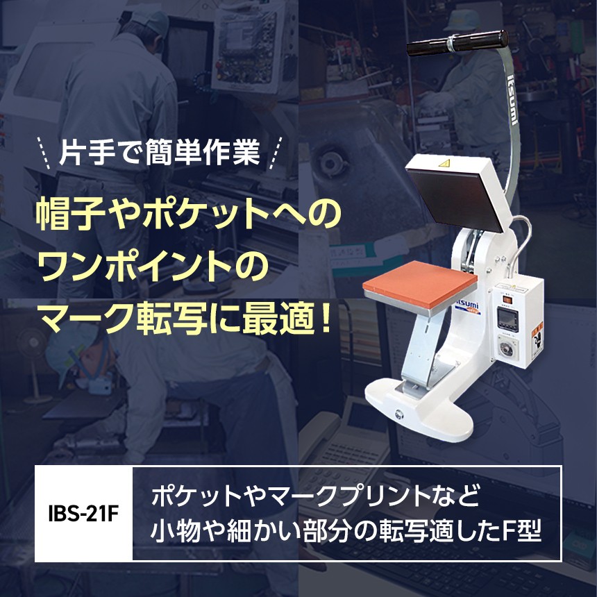 ワンポイントのマーク転写に最適な小型の転写プレス機! 手動マーク昇華転写プレス機 IBS-21F | 転写 マーク転写 平板 フラット プレス 小型 ポケット 小物 マーク 日本製 信州 八ヶ岳 長野県 諏訪郡 原村