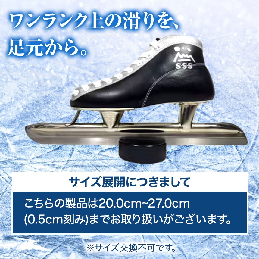 | 容量 | ・スケート靴:SA-1000 シルバーエース 原村シンボルマーク×S・S・Sコラボマーク仕様 牛革靴(黒) ・ブレード:SP-900 フリートスオード 鉄 ※靴とブレードのセット品です。ブレードは最初から靴に固定されています。 |