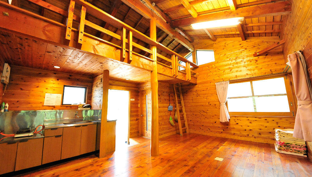 ロフトも設置されたハウスです。テントや寝袋での宿泊に抵抗のあるビギナーの方にもオススメです。