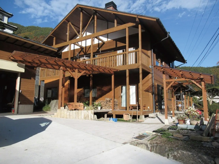 標高約800mの里山にある古民家を改修した民宿です。ランチ営業もしており、おかみさんの作る料理は地元にもファンが多くいます。お食事は、前の畑で作られた無農薬野菜が中心で、朝食は焼きたての自家製パンと自家製ジャムが好評です。農業体験で種蒔きから収穫までの農業や草刈り機や薪割りを体験する事も出来ます。