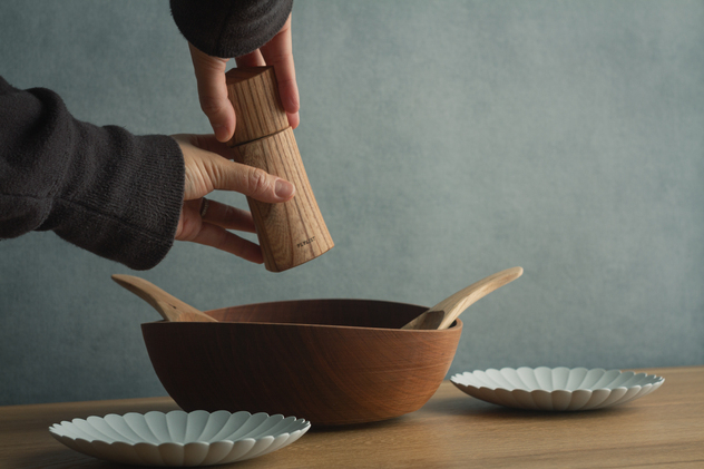三角形と四角形の小さな木製スパイスミル。 握りやすくかわいらしさのあるサイズ感です。 食卓に置いてもキッチンに置いても、どんな空間にも馴染んでくれます。 古い座卓や床柱、テーブルなどの家具の脚など、廃棄される材料をアップサイクルしたミルです。 毎回違う材料から一つ一つ手作業で制作しているため、樹種はお選びいただけません。 一つ一つ鉋で仕上げており、すべすべとした質感はずっと撫でていたくなるような手触りです。 ミルのすりつぶす感覚が心地よく、ついついスパイスを多くかけてしまいます。 ミルはデンマーク製CrushGrind(R)社のセラミックミルを使用しております。 塩と胡椒、どちらもお使いいただけます。 また、その他のスパイス(クローブ、フェンネルシード、花椒など)にもお使いいただけます。 いろんな料理にスパイスの挽きたての香りをお楽しみください。 塗料は食品衛生法適合のウレタン塗料を使用しております。撥水性があり、汚れもつきにくくなっております。 YouTubeチャンネル「PLYLIST」にてミルの紹介をしています。 【サイズ】 約14.5cm×5cm×5cm 【形状】 三角と四角 ※画像はイメージです。 ※三角・四角どちらかをお選びください。 ※使用している木材は制作の都合上のお選びいただけません。樹種の例としてはケヤキ・桜・ナラ・トチ・タモ・カバ等の広葉樹を使用することが多いです。 ※天然素材を使用しているため、個体差がございます。色や模様など違いがありますがご理解ください。 ※一つ一つ手作業で制作しております。形や仕上がりに若干の違いが生じる場合がありますがご理解ください。 ※一つ一つ手作業で制作しておりますので、お届けまでに1カ月程かかります。 ※木は経年で色が変化していきます。 ※木の性質上、使用しているうちに変形や割れが発生してくることがあります。 ※食品衛生法適合のガラス塗料やウレタン塗料を使用しています。 ※水洗いはしないでください。清掃する場合は、ブラシ等を使って乾燥させた状態で内部を清掃してください。 ※電子レンジやオーブン、食洗器は使用しないでください。また、煮沸による消毒や漂白剤は使用しないでください。変形や塗膜剥離の原因となります。