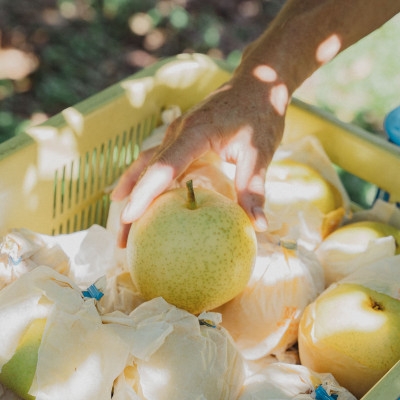 樹上で完熟した梨だけをその日のうちに収穫し、丁寧に荷造りして出荷されます。