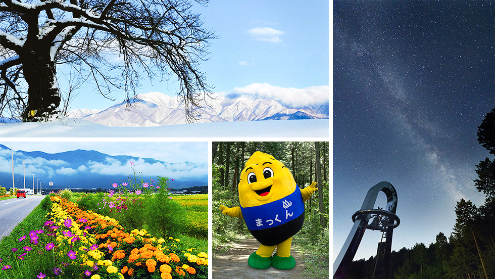 「大芝高原まつり」や「イルミネーションフェスティバル」、「経ヶ岳バーティカルリミット」、天然温泉「大芝の湯」や農産物加工直売施設「味工房」など、魅力いっぱいの南箕輪村へどうぞお越しください。