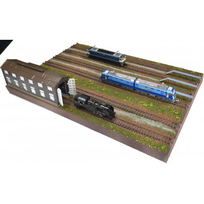 Nゲージ用 鉄道模型ジオラマ展示台 37×26cm 木造機関庫付き6線ヤード(洗浄台付き)【1590658】