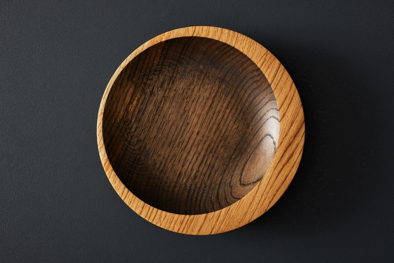 | 容量 | 1枚 サイズ:外円 直径約23cm・内円 直径約19cm 高さ:約3cm 材種:コナラ 仕上げ:液体ガラス塗料、鉄媒染色 |