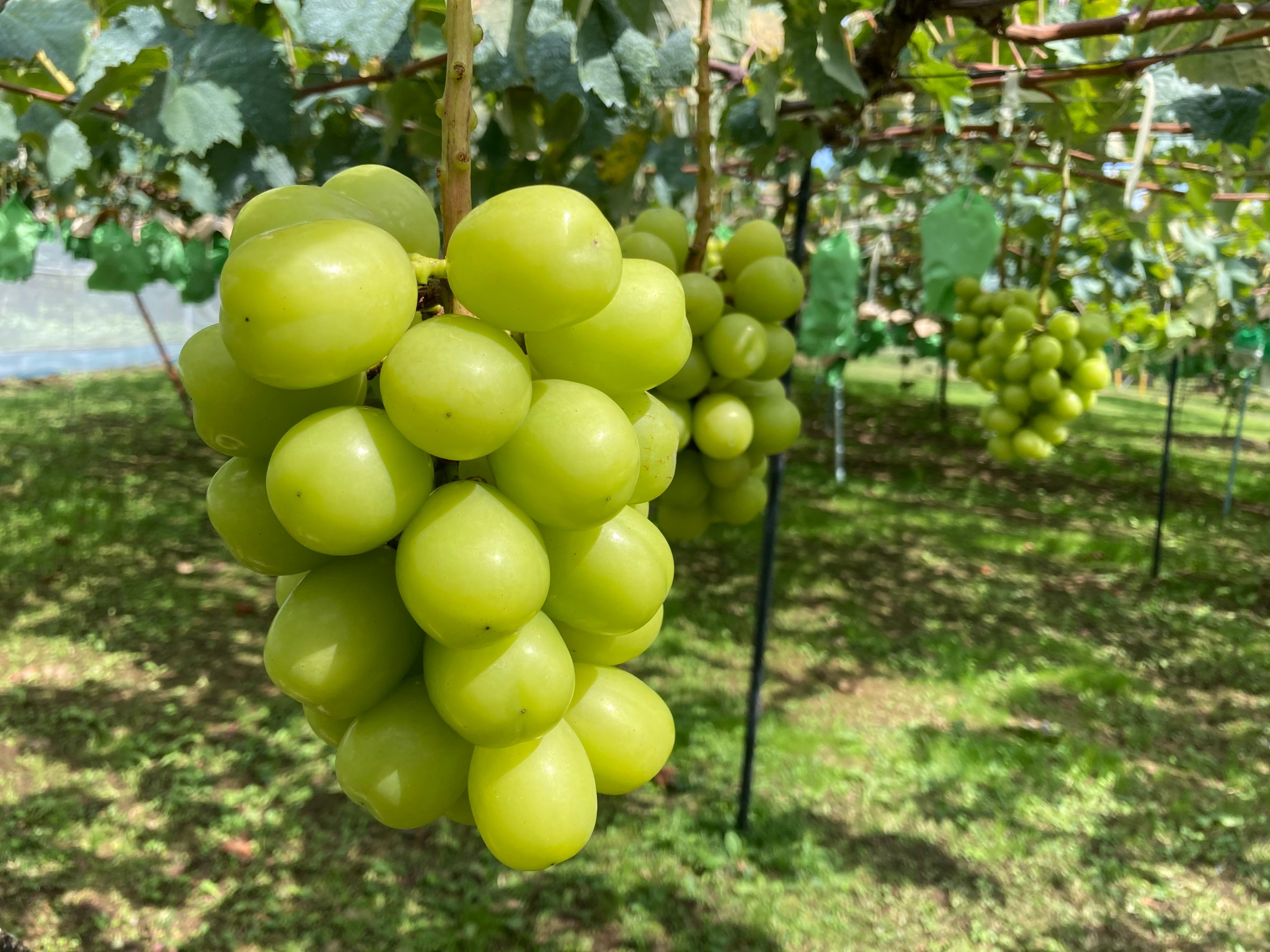 ぶどうはまだ小さな粒がふくらみ始めたころから一房ずつ手入れされ、美しいかたちに仕上がるように農家の手で整えられます。