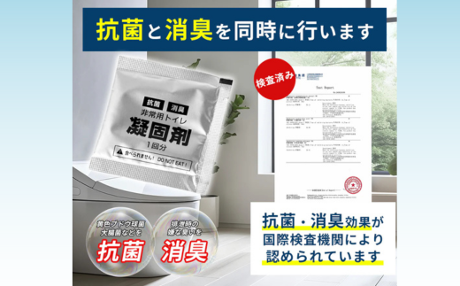 防災・非常用に最適な凝固剤・防臭袋・処理袋の3点セットが50回分入っています。1回分ずつ個包装されているので、長期保存や携帯にも便利です。