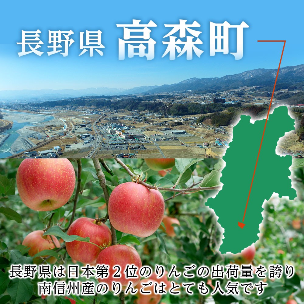 信州の南部は、温暖な天竜川沿いから冷涼な山麓にかけた一帯で、昼夜の寒暖差が大きいことから甘いりんごが実ります。無袋栽培で太陽の光をいっぱい浴びたサンつがるをぜひご賞味ください。