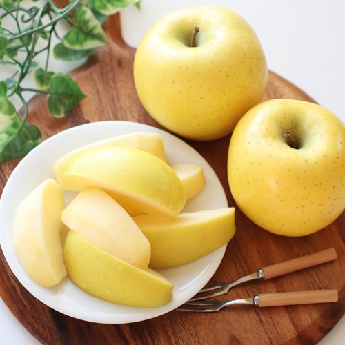 甘味と酸味のバランスが良く、パリッとした食感。瑞々しく果汁たっぷりでおいしいりんごです。長野生まれの黄金色のりんご。一口食べればそのおいしさが分かるはず。青りんごなんて…。と思わず一度試してみて下さい。