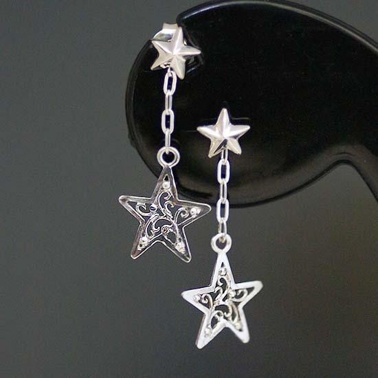 ブランツ 透かし星の2wayピアス | 星 ドロップ ピアス 銀 多用途 star 唐草 透かし 耳飾り 宇宙 星空 誕生日 クリスマス 950 2way シルバー プレゼントラッピング