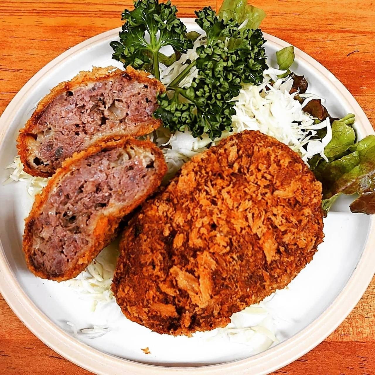 一度食べた人からは、こんなに黒毛和牛がぎっしり詰まっていて、美味しいメンチカツは、他では食べたことがないと大変ご好評いただいています。