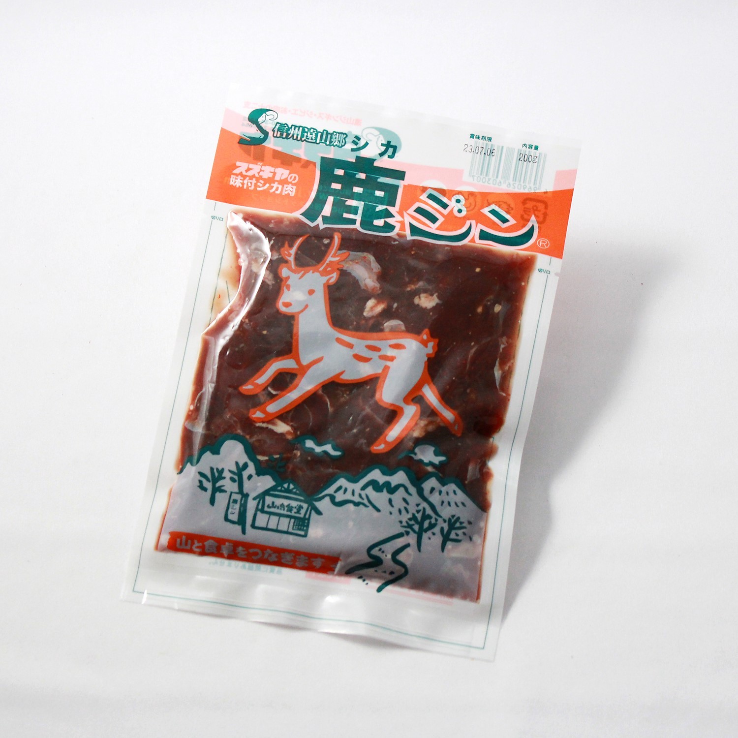 ・鹿ジン(鹿のジンギス):鹿肉、しょうゆ、砂糖、みそ、にんにく、みりん風調味料、醸造酢、かきエキス、玉ねぎエキス、香辛料/調味料(アミノ酸等)、(一部に大豆・小麦を含む)