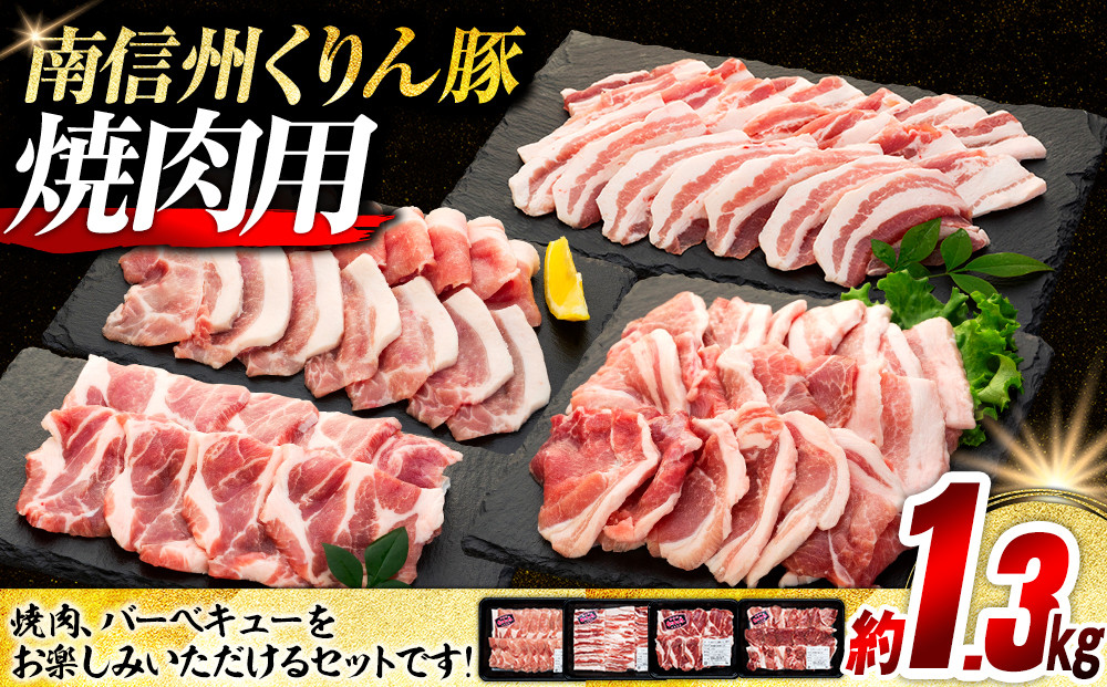 | 容量 | 南信州くりん豚焼肉セット ロース350g・バラ350g・カタロース200g・ウデ400g 計1300g |